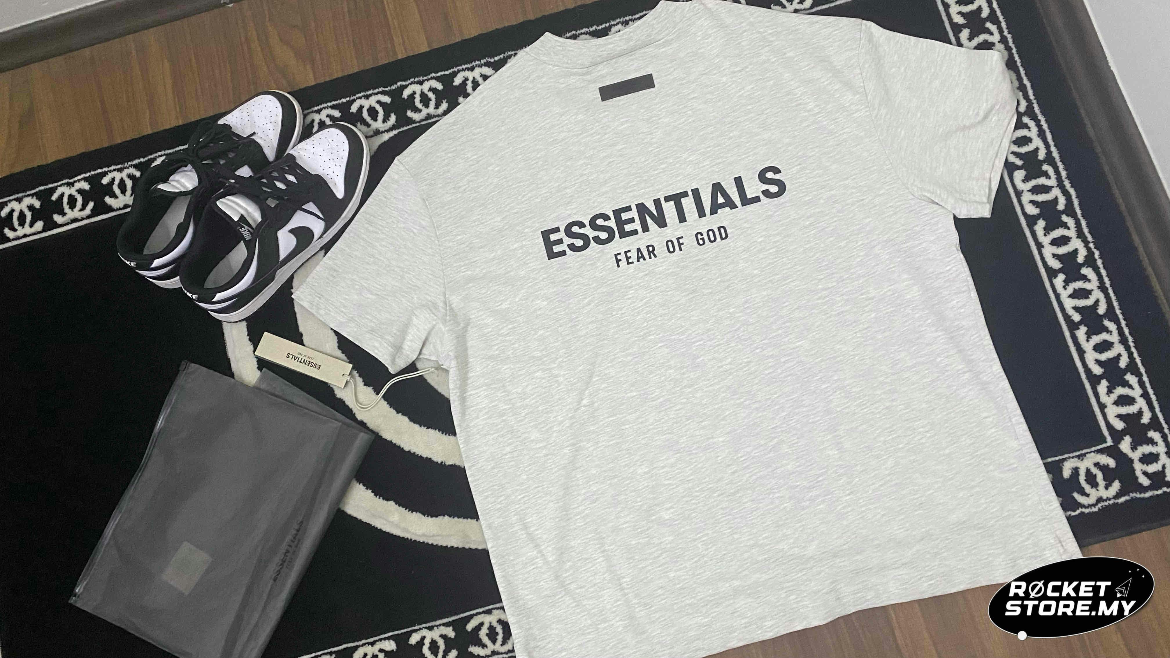 Enhance your streetwear collection with the Fear of God Essentials T‑shirt (SS22) in Light Oatmeal. Crafted by the renowned brand, Grey, this collectible piece showcases the perfect blend of comfort and style. Add a touch of Fear of God sophistication to your wardrobe with this versatile and fashionable t-shirt.