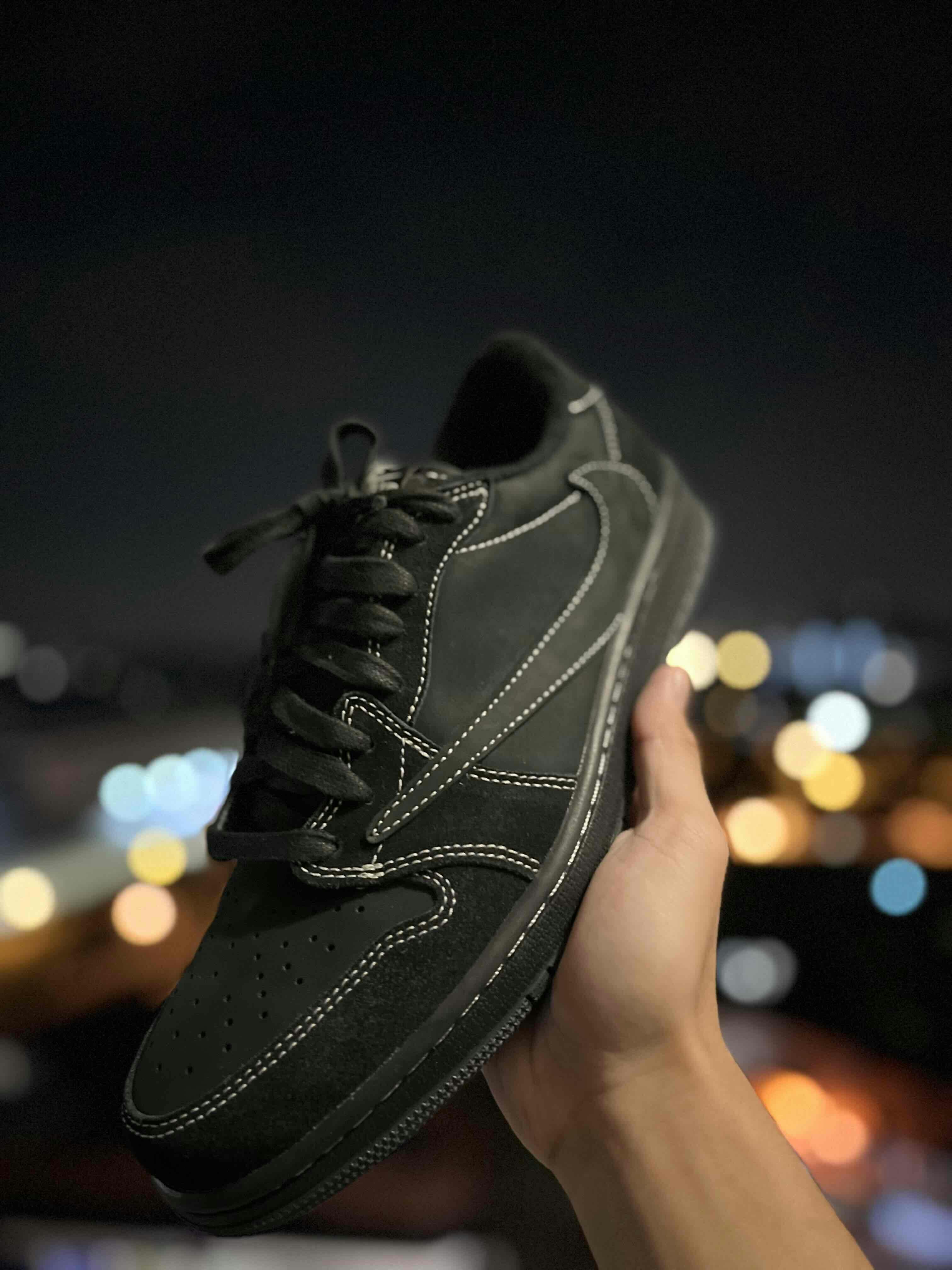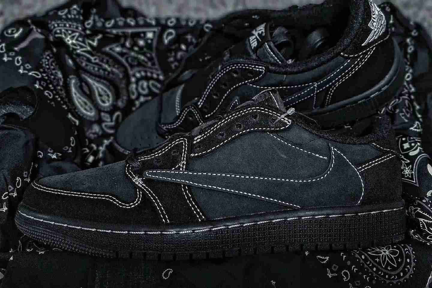 Travis Scott x Air Jordan 1 Retro Low OG SP 'Black Phantom' Hitam DM7866-001