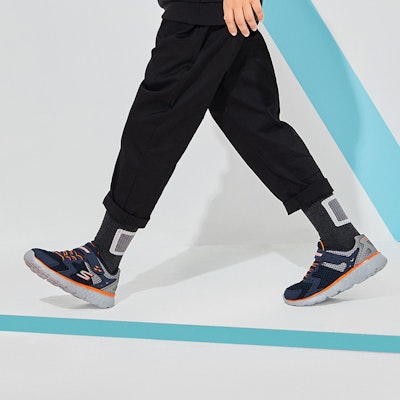Los Skechers Go Run 400 Proxo para niños en color negro/naranja ofrecen comodidad, ligereza y soporte ideal para pequeños exploradores en crecimiento.