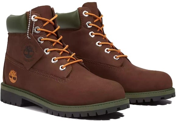 ティンバーランドの定番、プレミアム6インチブーツ、キッズサイズ! 丈夫なヌバックレザーとシームシールド構造で、雨の日も安心。快適なパッド入りカラーと耐久性のあるラバーラグアウトソールで、元気いっぱいの遊びをサポート。おしゃれなミドルブラウンはどんなコーデにも相性抜群。[型番: A5TC7] プレゼントにも最適です。 #ティンバーランド #キッズブーツ #子供靴 #防水